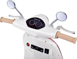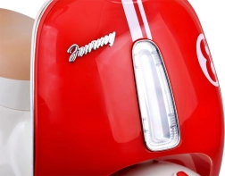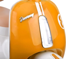 Der vom ikonischen italienischen Stil inspirierte Roller kombiniert eleganten Retro-Look mit moderner Technik. Kinder freuen sich über realistische Details, LED-Beleuchtung und Motorstart-Sound. Die maximale Geschwindigkeit von ca. 3 km/h ist ideal für ein sicheres Herantasten ans Fahren.