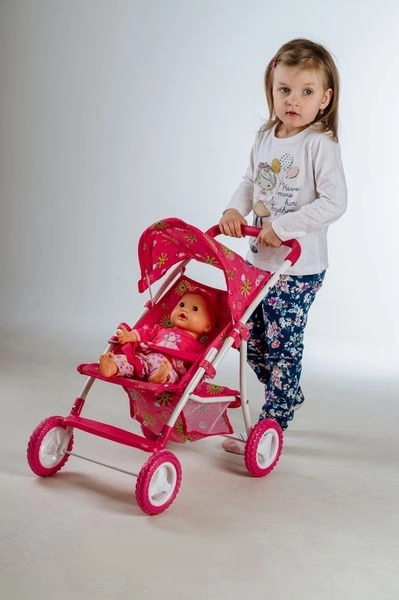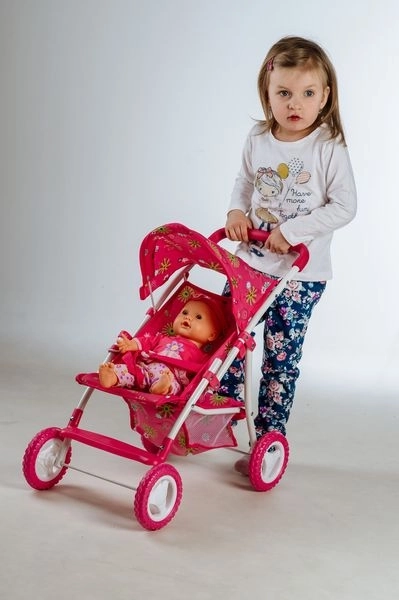 Der Sportwagen für Puppen bietet dank seiner hochwertigen Konstruktion aus Metall und Kunststoff hervorragende Stabilität und einfache Handhabung. Dank des klappbaren Verdecks kann die Puppe leicht vor der "Sonne" geschützt werden. Der Stauraum unten ist ideal, um alle wichtigen Accessoires für tägliche Abenteuer zu transportieren. Dieser Wagen ist so konzipiert, dass er den Bedürfnissen von Kindern ab 3 Jahren gerecht wird.