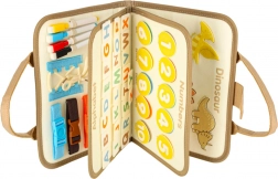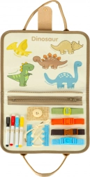 Der Koffer enthält eine abwischbare Tafel und lehrreiche Komponenten, durch die Kinder Wissen spielerisch entwickeln können. Filzfiguren von Dinosauriern sind ebenfalls für kreatives Spielen vorhanden.