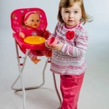 Dieser hohe Puppenstuhl mit Tisch ist ideal für Mädchen, die ihre Puppe füttern möchten. Mit Eleganz und Funktionalität bietet er stundenlangen Spielspaß.