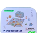 Das Holz-Picknickset TOOKY TOY im niedlichen türkisfarbenen Koffer bietet Kindern realistischen Spielspaß beim Zubereiten und Servieren von Speisen. Buntes Obst und Gebäck lassen sich „schneiden“ und wieder zusammenfügen; Teller, Besteck, Tassen sowie Milchkarton und Saftkarton sind ebenfalls dabei. Das Spiel fördert Feinmotorik, Hand-Auge-Koordination und Sprachentwicklung im natürlichen Rollenspiel.