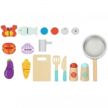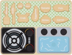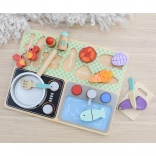 Dieses zauberhafte Holz-Küchenset ist für Kinder ab 3 Jahren bestimmt. Mit der praktischen Tafel lernen die Kinder die Namen von Gemüse, Küchenutensilien und anderen mit Kochen und Essen zusammenhängenden Gegenständen. Hergestellt aus hochwertigem Holz, ist dieses Set haltbar und sicher für Kinder.