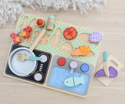 Verwandeln Sie gewöhnlichen Spaß in eine echte kulinarische Show! Dieses bunte Holz-Küchenset ist das ideale Angebot für kleine Kochliebhaber. Sichere, sorgfältig verarbeitete Komponenten sorgen dafür, dass sich Ihr Kind wie ein echter Chefkoch fühlen wird!