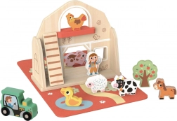 Tooky Toy Zusammenbaubare Holzfarm mit Tierfiguren