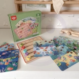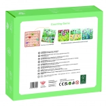 Das Spiel ist für Kinder ab 3 Jahren geeignet und enthält eine Holztafel zur Beschriftung von Zahlen und 20 Karten mit Waldmotiven zum Zählen der Tiere, auf deren Rückseite sich die Antworten befinden. Kinder können alleine spielen, das Zählen und den Wortschatz auf Deutsch und Englisch üben.