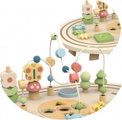 Entdecken Sie mit Ihrem Kind die Welt der Aktivitäten mit unserem Safari-Tisch. Ideal für Kinder ab 1 Jahr, kombiniert dieser Tisch eine Vielzahl von Bildungselementen wie Formen, Schiebebahnen und weitere Aktivitäten.