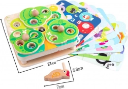 Das hölzerne Vögelchen mit magnetischem Schnabel ermöglicht es, Würmchen leicht zu greifen und zu versetzen. Kinder trainieren bei jedem „Angeln“ Präzision, Griff und Hand-Auge-Koordination.
