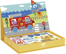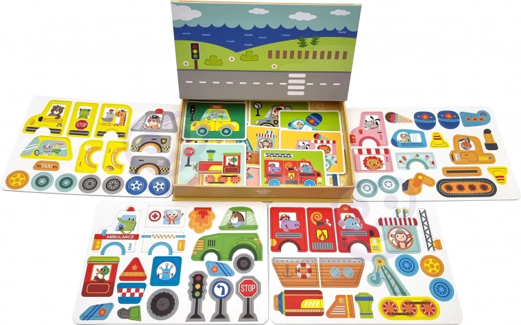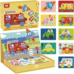 Dieses magnetische Puzzle im cleveren Box-Set verbirgt eine ausziehbare Magnettafel direkt im Deckel. Mit bunten Magnetteilen können Kinder Tiere und weitere Motive auf den vorbereiteten Vorlagen legen oder eigene Bilder gestalten. Das Spiel fördert Kreativität, Konzentration und die Hand-Auge-Koordination.