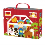 Genießen Sie kreativen Spaß mit diesem Holzbauerhof im Koffer von Tooky Toy. Es ist sorgfältig verarbeitet und bietet variable Spielmöglichkeiten dank der enthaltenen Tierfiguren, die Sie auf den Anhänger stellen können. Das ganze Set lässt sich leicht im Koffer verstauen, was es ideal für unterwegs macht. Eine hervorragende Wahl zum Spielen zu Hause und bei Besuchen.