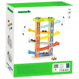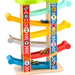 Holzrutsche von Tooky Toy ist ein ideales Spielzeug, das Kindern hilft, wichtige Fähigkeiten spielerisch zu entwickeln. Beobachten Sie, wie die Autos nach unten rutschen und sich auf ein Abenteuer voller Geschwindigkeit und Spaß begeben.
