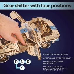Der Endurance Racer von Ugears ist ein zweitüriges Sportcoupé, das für Auto-Enthusiasten entworfen wurde. Das Modell überzeugt mit realistischen Rennfunktionen wie einem Schalthebel mit Vorwärts-, Rückwärts- und Sportmodi für extra Beschleunigung. Silikonreifen sorgen für extra Grip und Stabilität.
