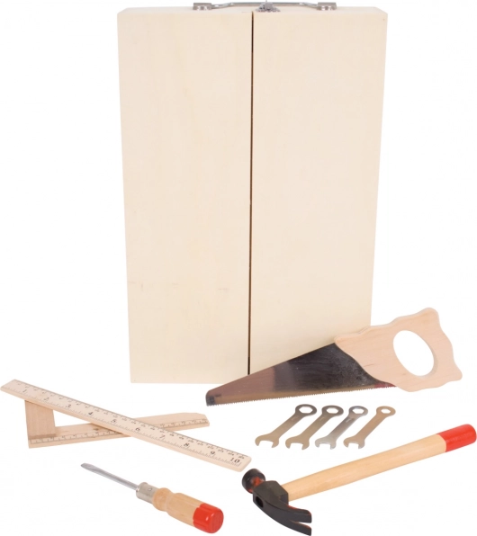 Der hölzerne Werkzeugkoffer enthält alles, was ein junger Handwerker benötigt. Enthält Schraubenzieher, Sägen, Schlüssel, Hämmer und viele weitere Werkzeuge. Hergestellt aus hochwertigen Materialien und entspricht den europäischen Sicherheitsnormen.