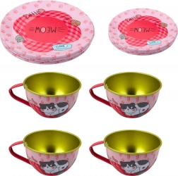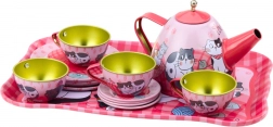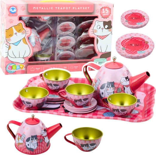 Verleihen Sie Ihren Kindern ein außergewöhnliches Spielerlebnis mit diesem Metall-Teeservice mit Katzenmotiv. Das Set ist darauf ausgelegt, die Fantasie und die Entwicklung sozialer Fähigkeiten der Kinder zu unterstützen. Ideal für Einzelspiel oder in Gesellschaft von Geschwistern und Freunden.