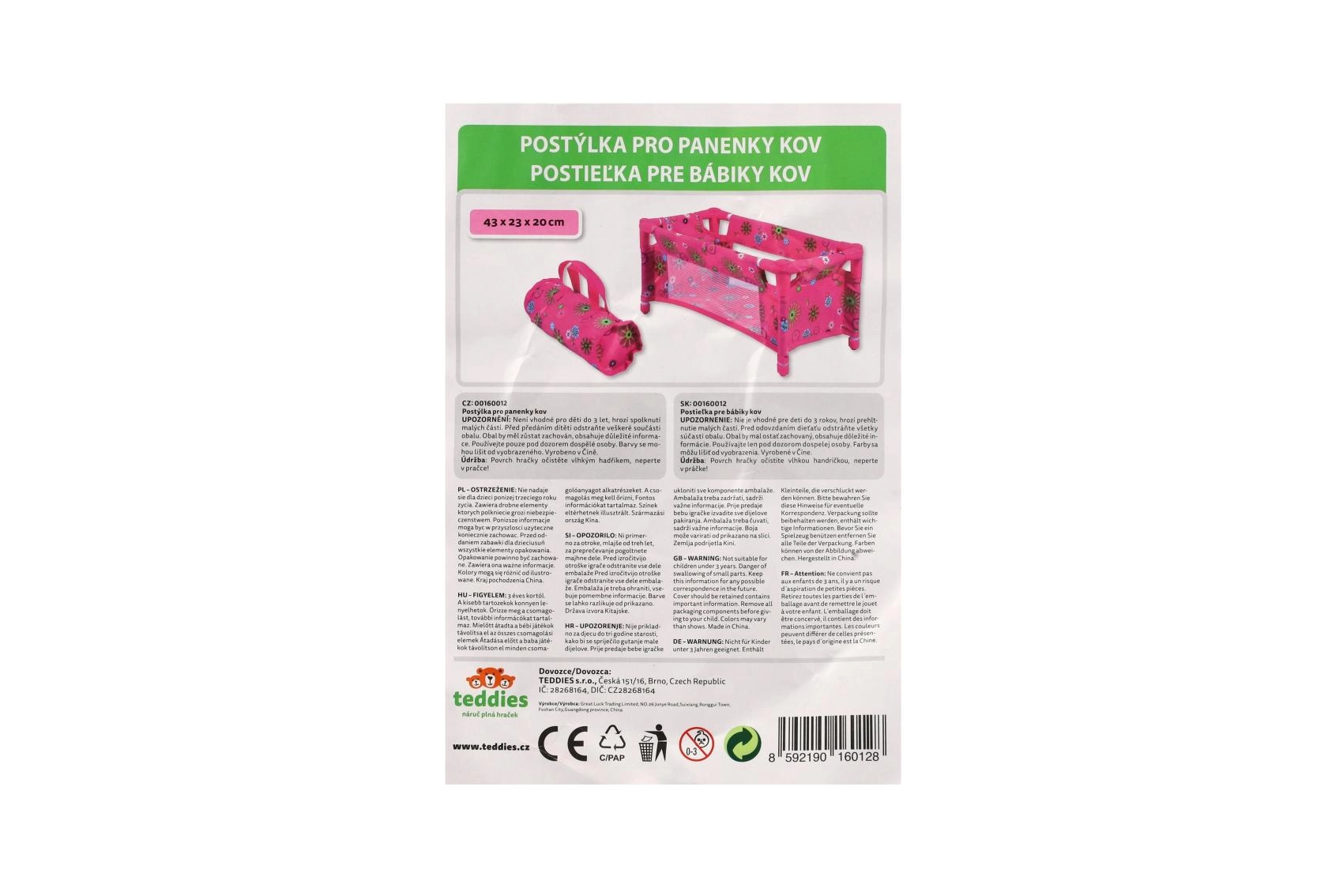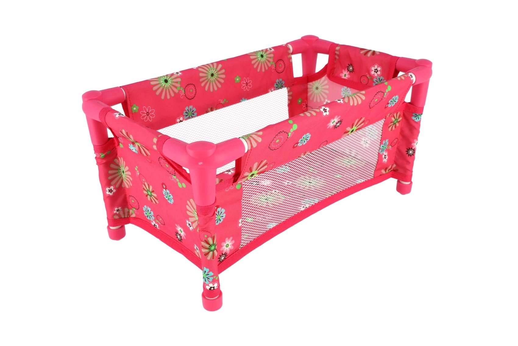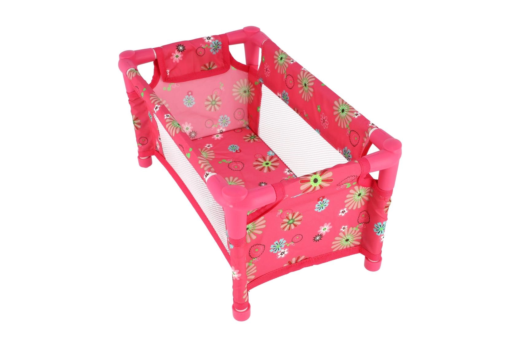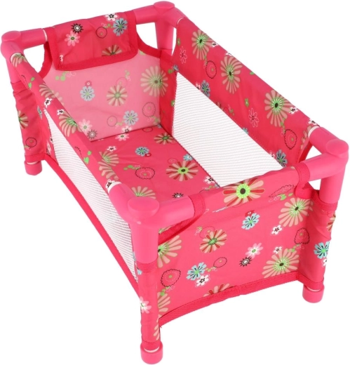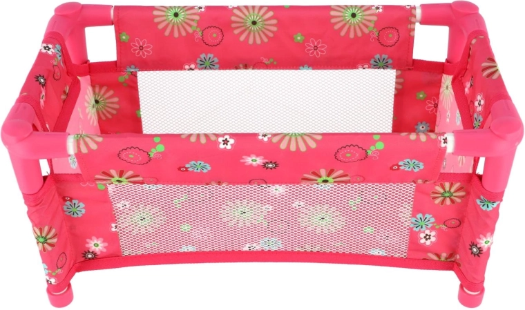 Die robuste, dennoch leichte Konstruktion aus Rohren und Textilpaneelen hält dem täglichen Spiel stand. Das Bett wird ohne Matratze (ohne feste Bodenplatte) geliefert, was es zu einem sicheren und flexiblen Zubehör fürs Kinderzimmer macht. Das fröhliche Blumenmotiv in Rosatönen erfreut jede kleine Puppenmama.