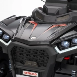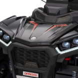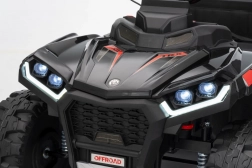 Sicherheit wird durch Sicherheitsgurte und EVA-Räder für eine stabile und komfortable Fahrt gewährleistet. Das Quad verfügt außerdem über LED-Scheinwerfer und ein integriertes Audio-Panel, das einen MP3-Player, Bluetooth und einen USB-Anschluss enthält und das Hören beliebter Musik während der Fahrt ermöglicht.