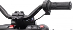 Weitere Funktionen beinhalten einen Sitz aus Kunstleder, einen geräumigen Kofferraum und eine Ladeanzeige, die sicherstellen, dass Kinder während der Fahrt alles unter Kontrolle und Komfort haben. Dieser ATV ist der ideale Begleiter für Kinderausflüge und die Entdeckung der Natur.