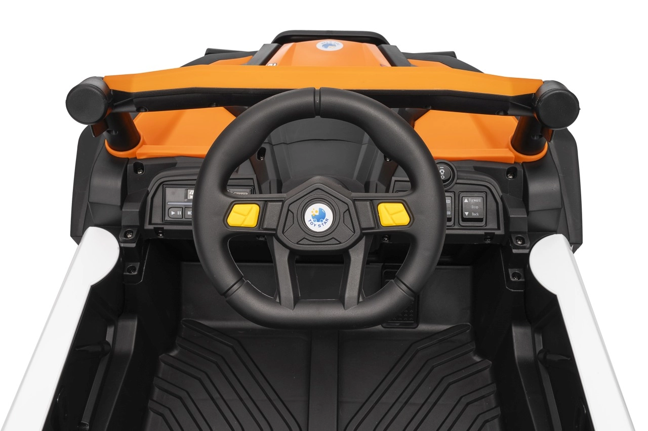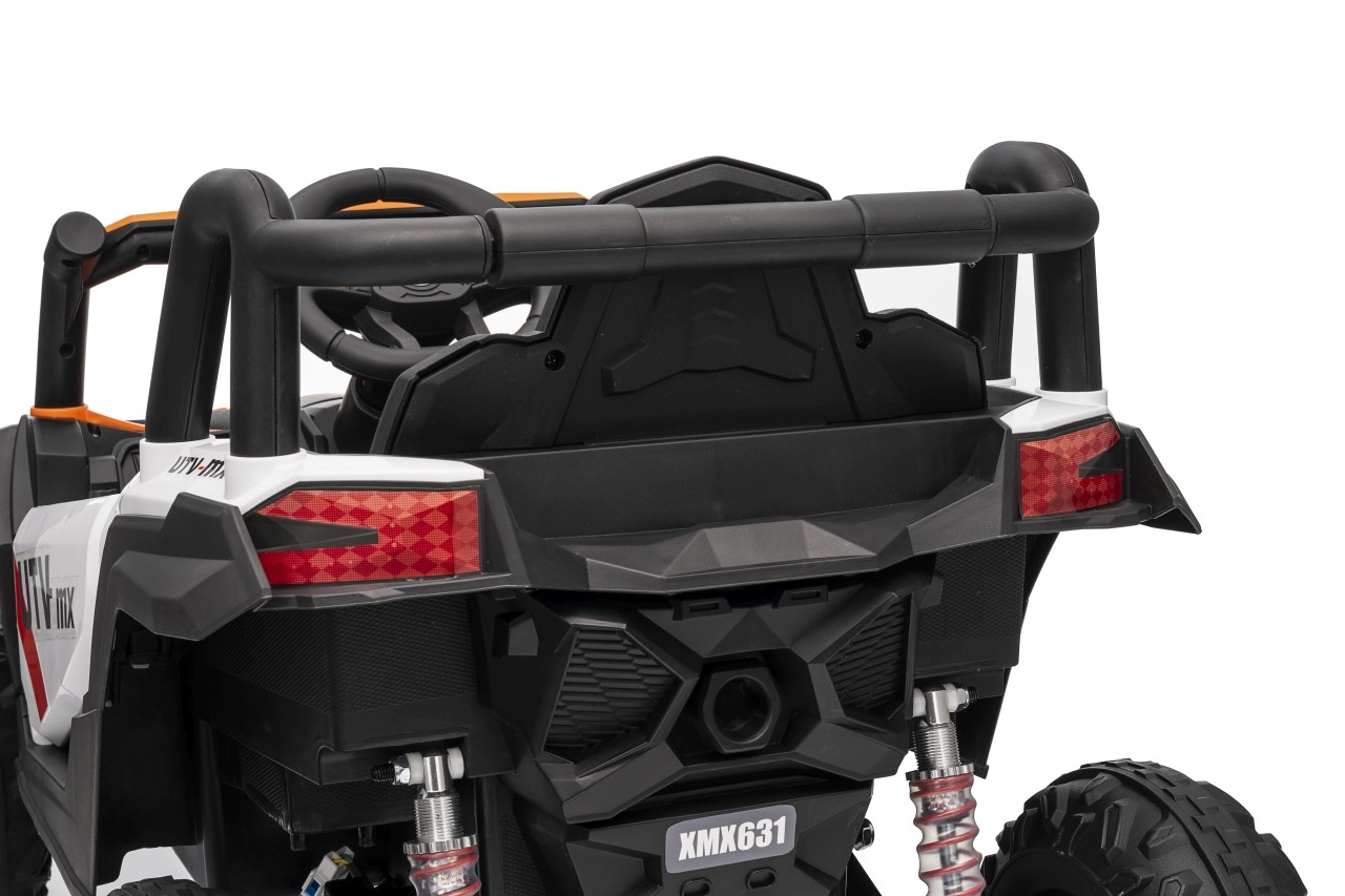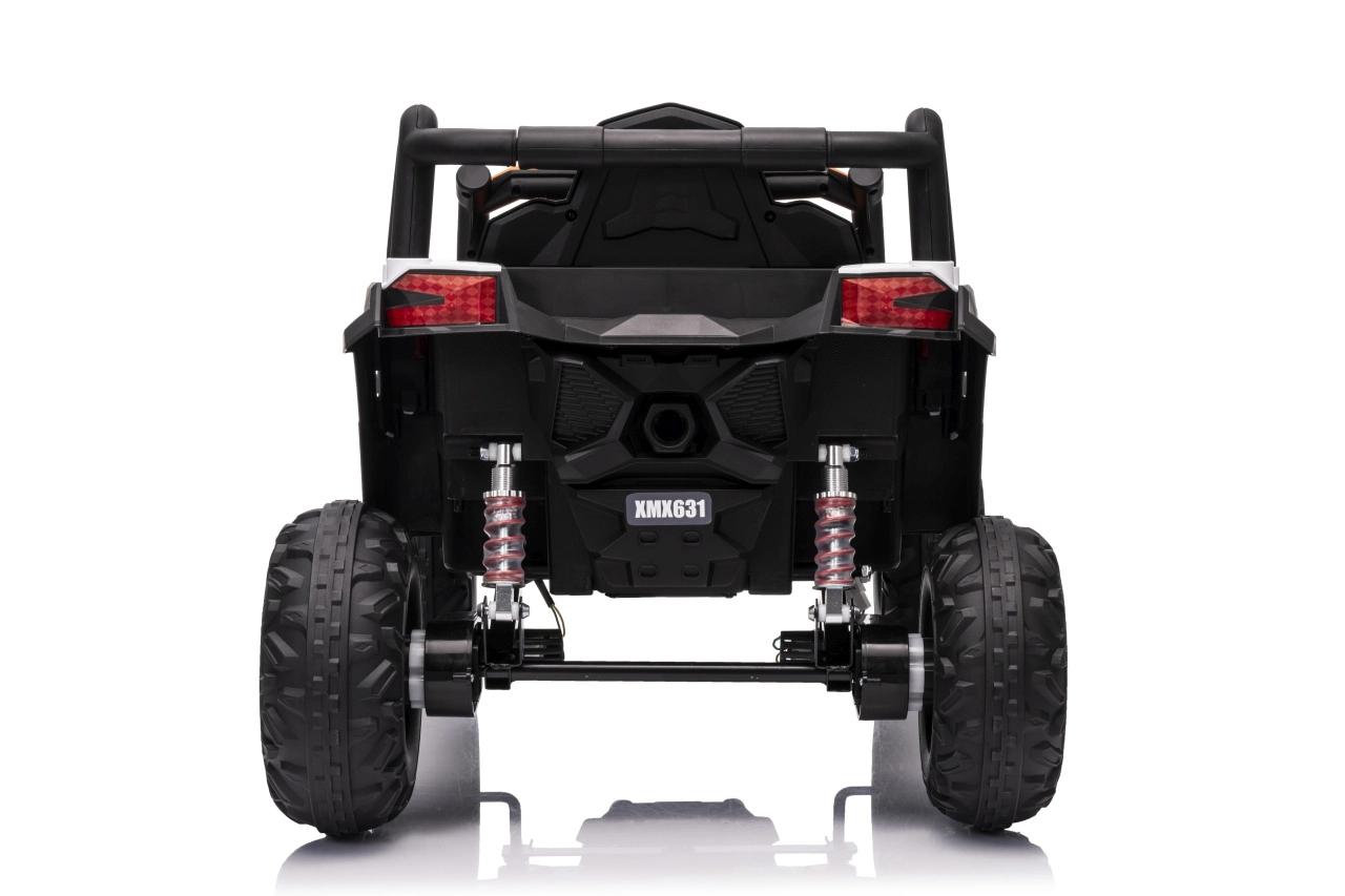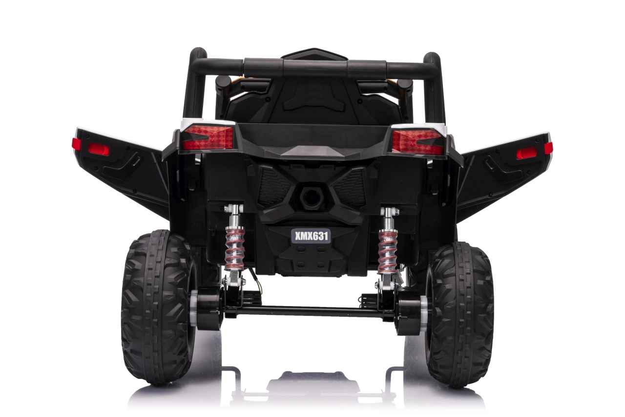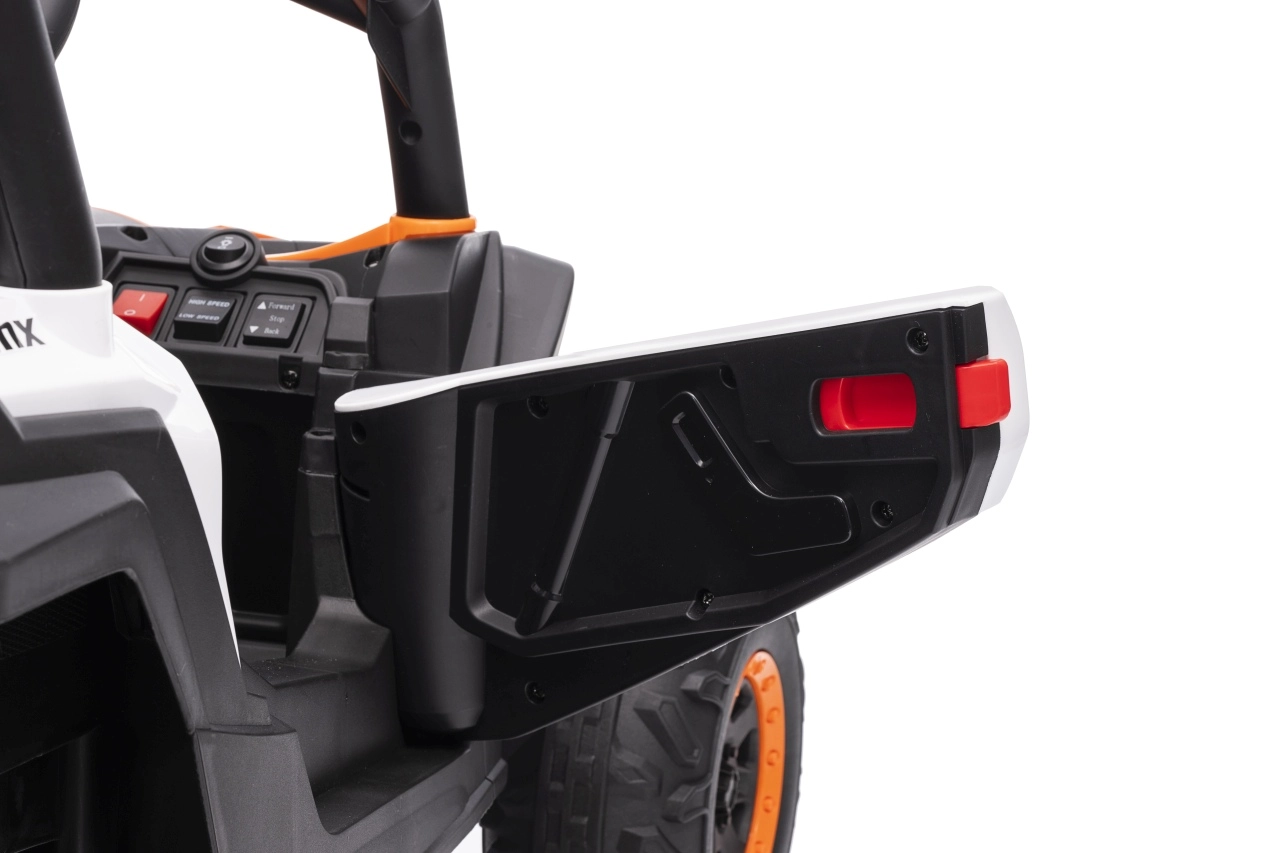 Das elektrische Fahrzeug Buggy Madman UTV-MX ist mit vier starken Motoren mit einer Leistung von 35W pro Motor ausgestattet und wird von einer 12V10Ah Batterie betrieben. Die Steuerung erfolgt über eine sehr frequenzstabile 2,4 GHz Fernbedienung, die eine Auswahl aus drei Geschwindigkeiten bietet und mit der auch der Sicherheitsschalter Stop aktiviert werden kann.