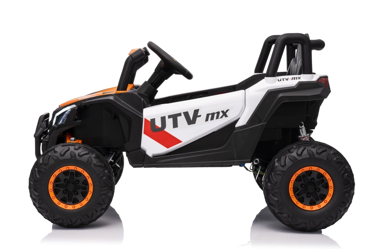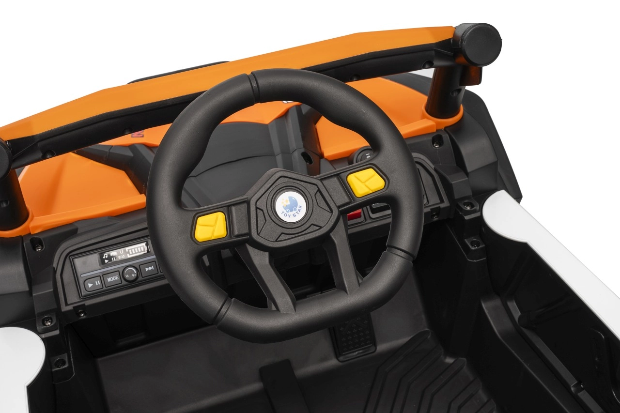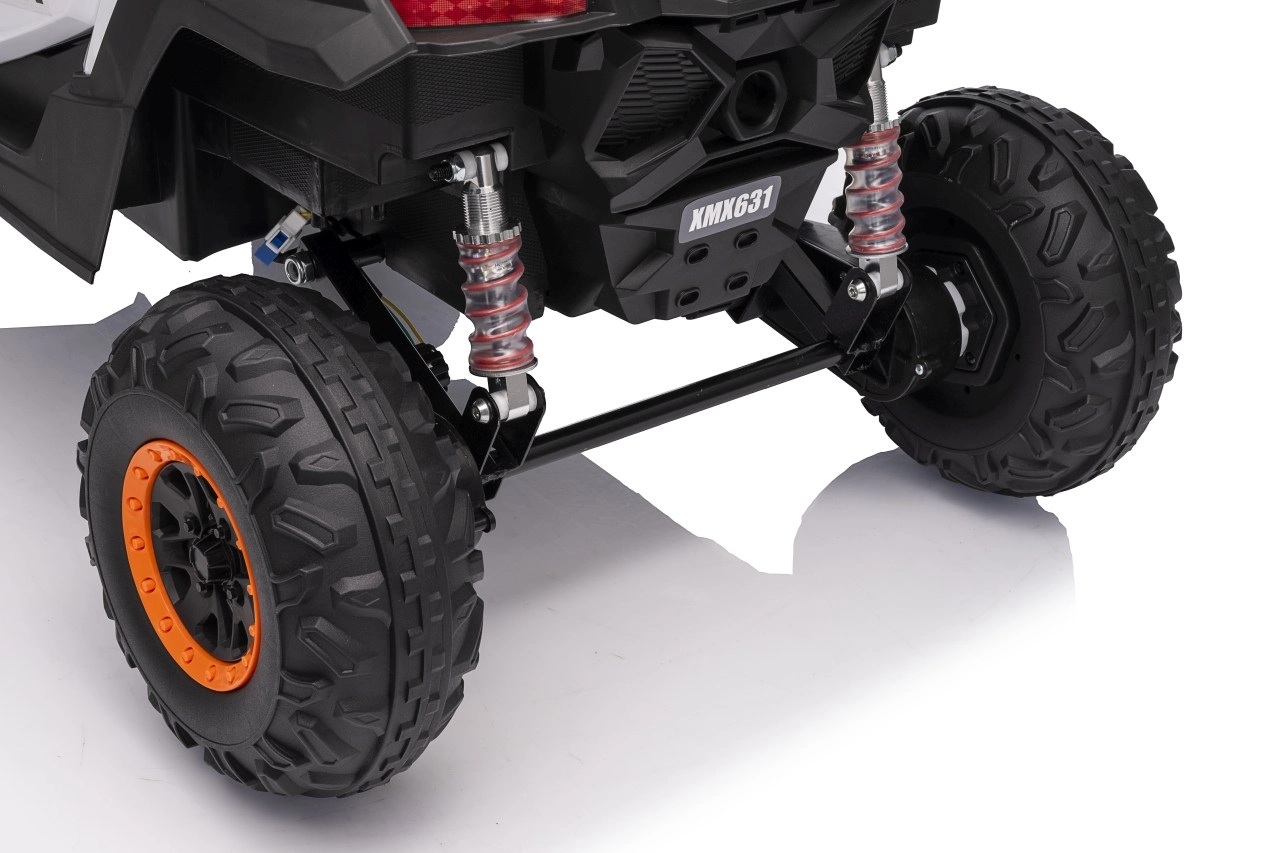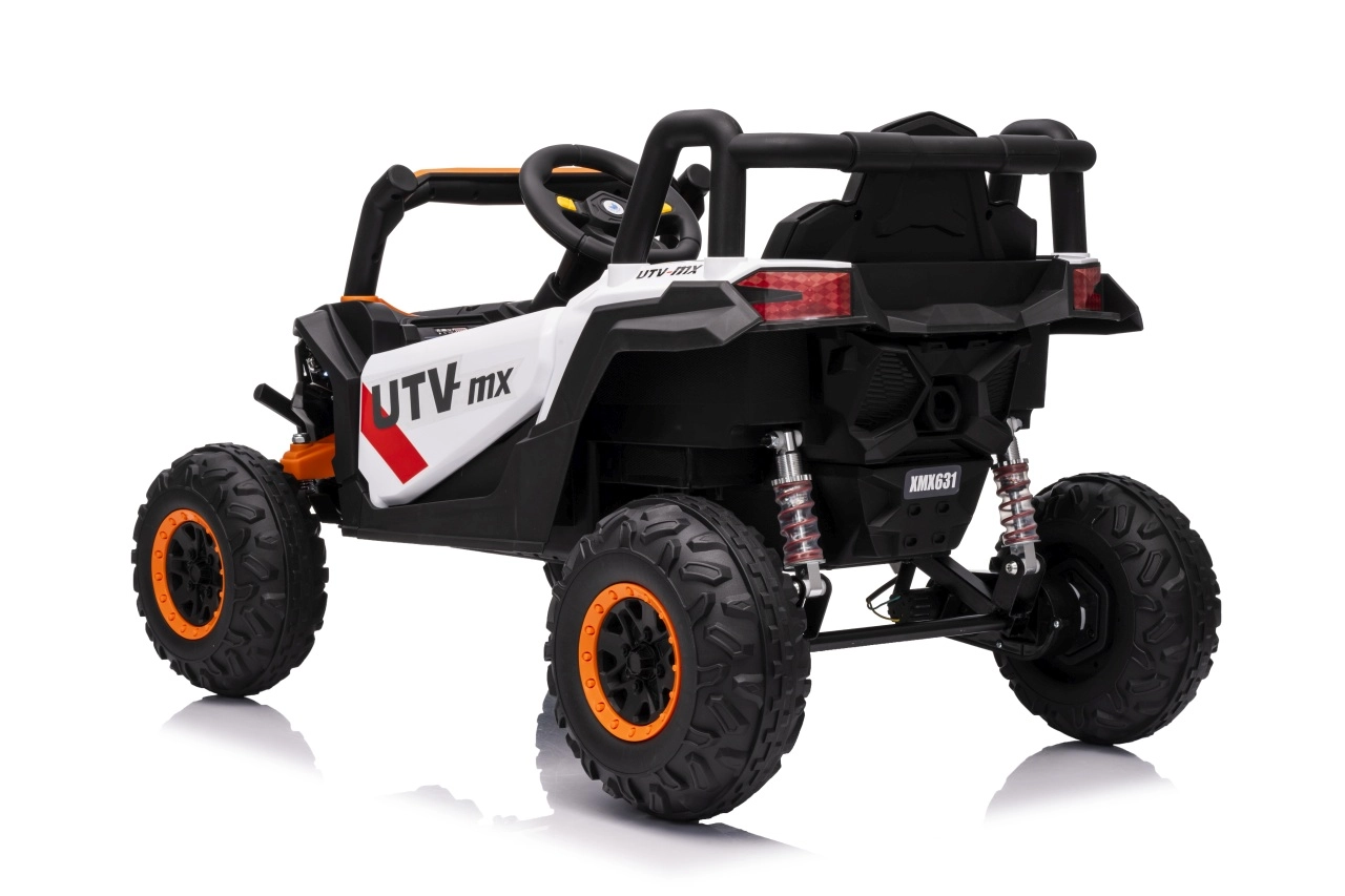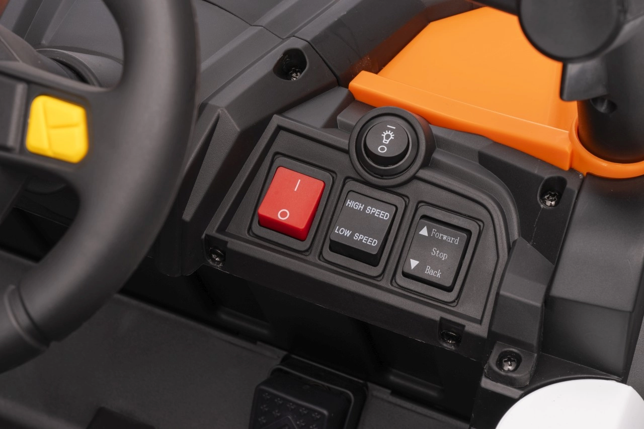 Das elektrische Fahrzeug Buggy Madman UTV-MX ist mit vier starken Motoren mit einer Leistung von 35W pro Motor ausgestattet und wird von einer 12V10Ah Batterie betrieben. Die Steuerung erfolgt über eine sehr frequenzstabile 2,4 GHz Fernbedienung, die eine Auswahl aus drei Geschwindigkeiten bietet und mit der auch der Sicherheitsschalter Stop aktiviert werden kann.