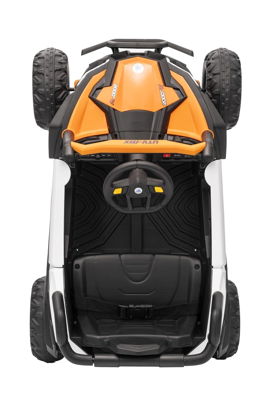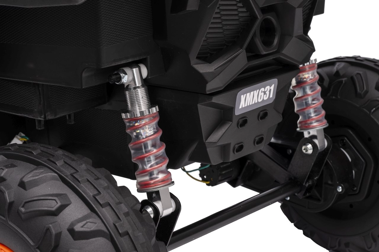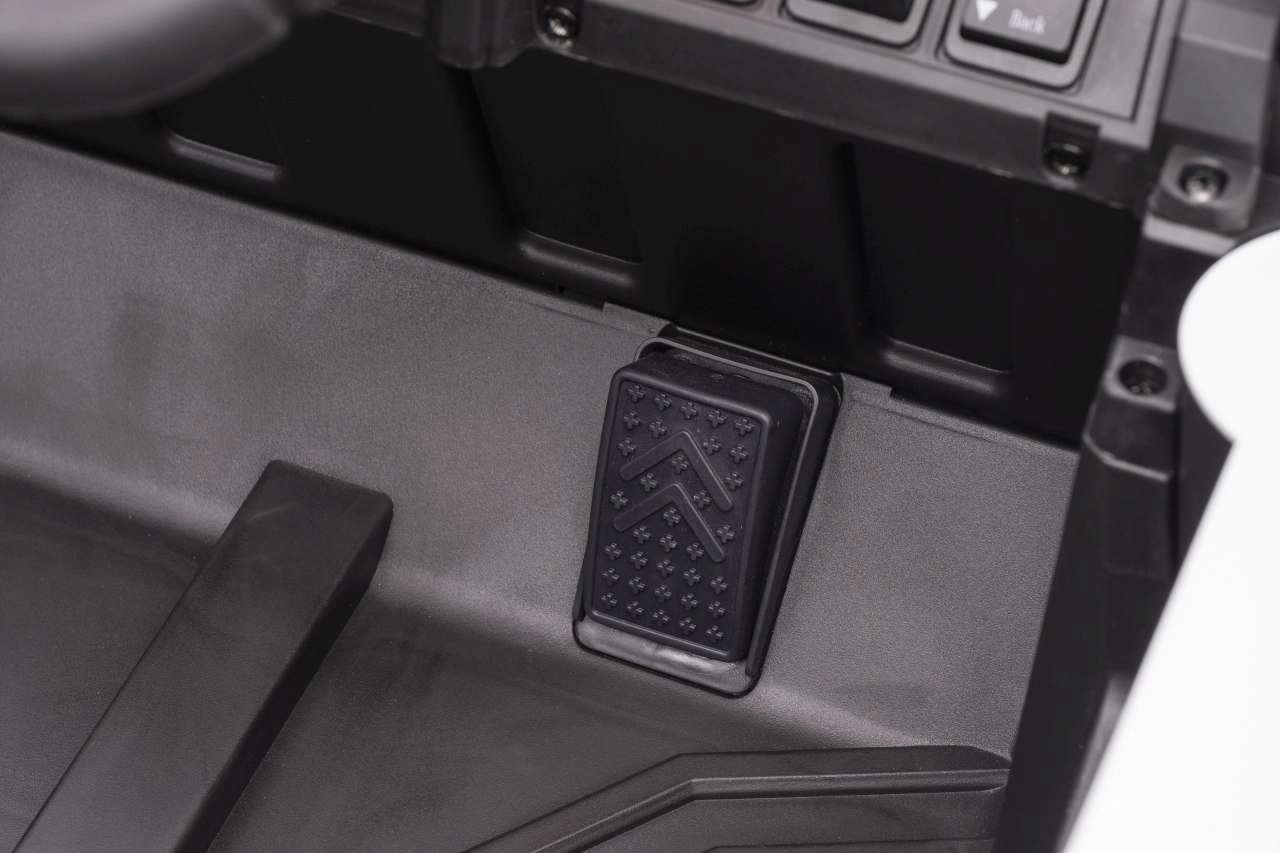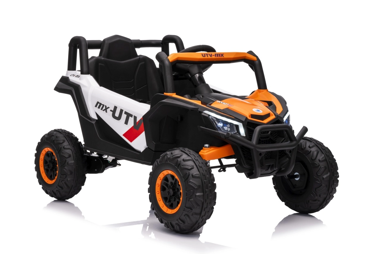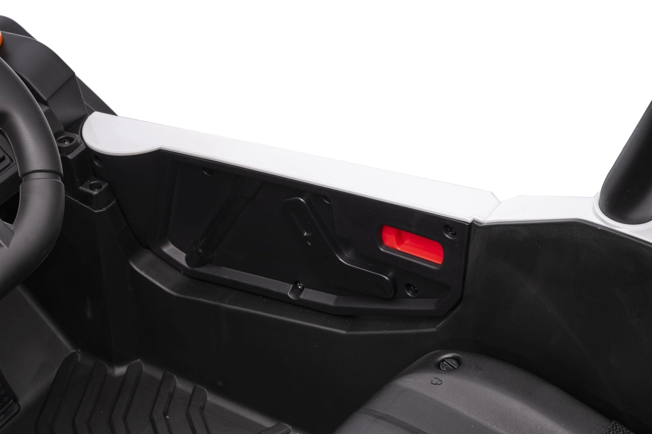 Das elektrische Fahrzeug Buggy Madman UTV-MX ist mit vier starken Motoren mit einer Leistung von 35W pro Motor ausgestattet und wird von einer 12V10Ah Batterie betrieben. Die Steuerung erfolgt über eine sehr frequenzstabile 2,4 GHz Fernbedienung, die eine Auswahl aus drei Geschwindigkeiten bietet und mit der auch der Sicherheitsschalter Stop aktiviert werden kann.