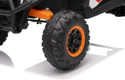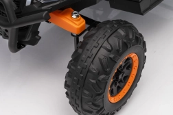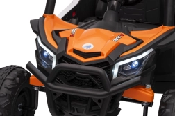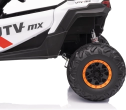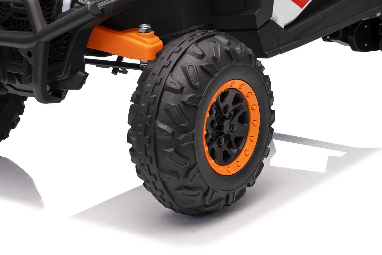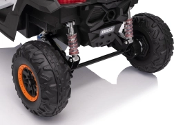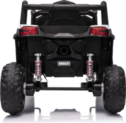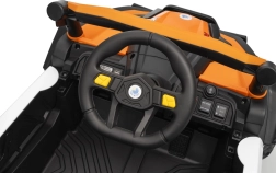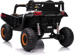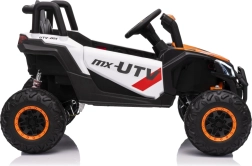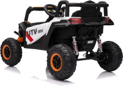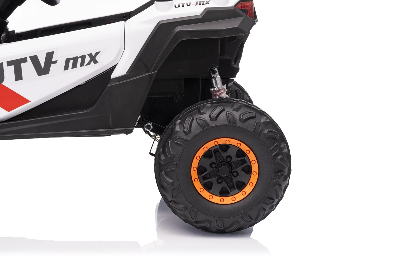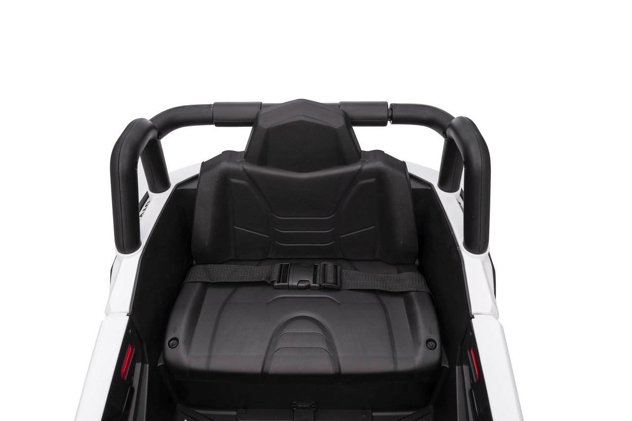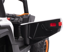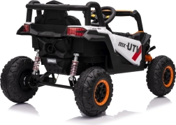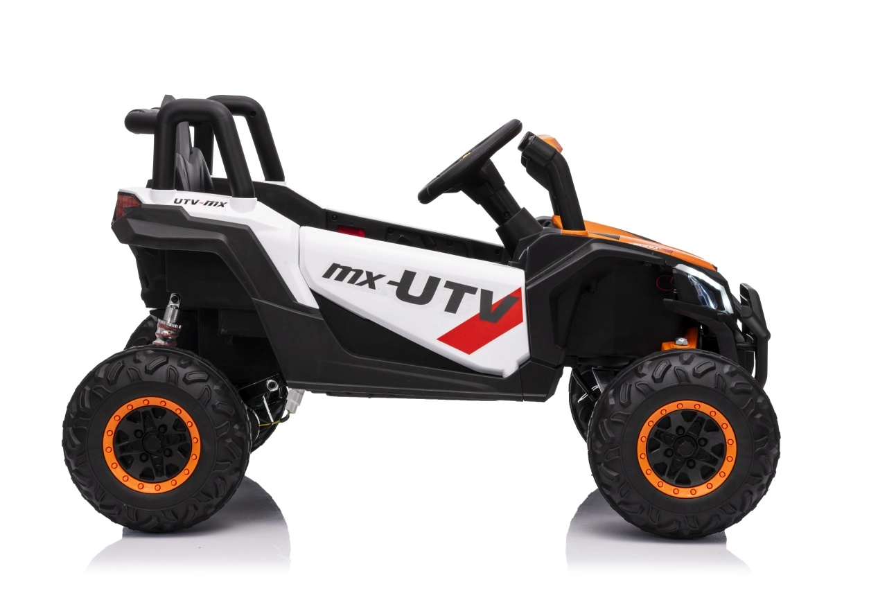 Das elektrische Fahrzeug Buggy Madman UTV-MX ist mit vier starken Motoren mit einer Leistung von 35W pro Motor ausgestattet und wird von einer 12V10Ah Batterie betrieben. Die Steuerung erfolgt über eine sehr frequenzstabile 2,4 GHz Fernbedienung, die eine Auswahl aus drei Geschwindigkeiten bietet und mit der auch der Sicherheitsschalter Stop aktiviert werden kann.
