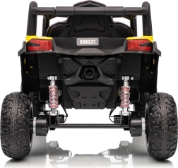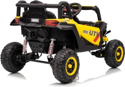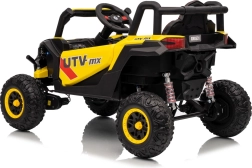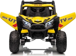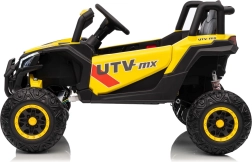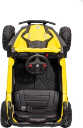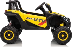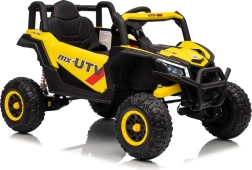 Dieses gelbe Buggy Madman UTV-MX ist ideal für Kinderfahrten dank des leistungsstarken Motors mit 4x35W und einer Batterie von 12V10Ah, die lange Fahrten ermöglicht. Die Steuerung ist einfach mit einer Fernbedienung auf 2,4 GHz Frequenz und drei Geschwindigkeitsstufen.