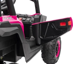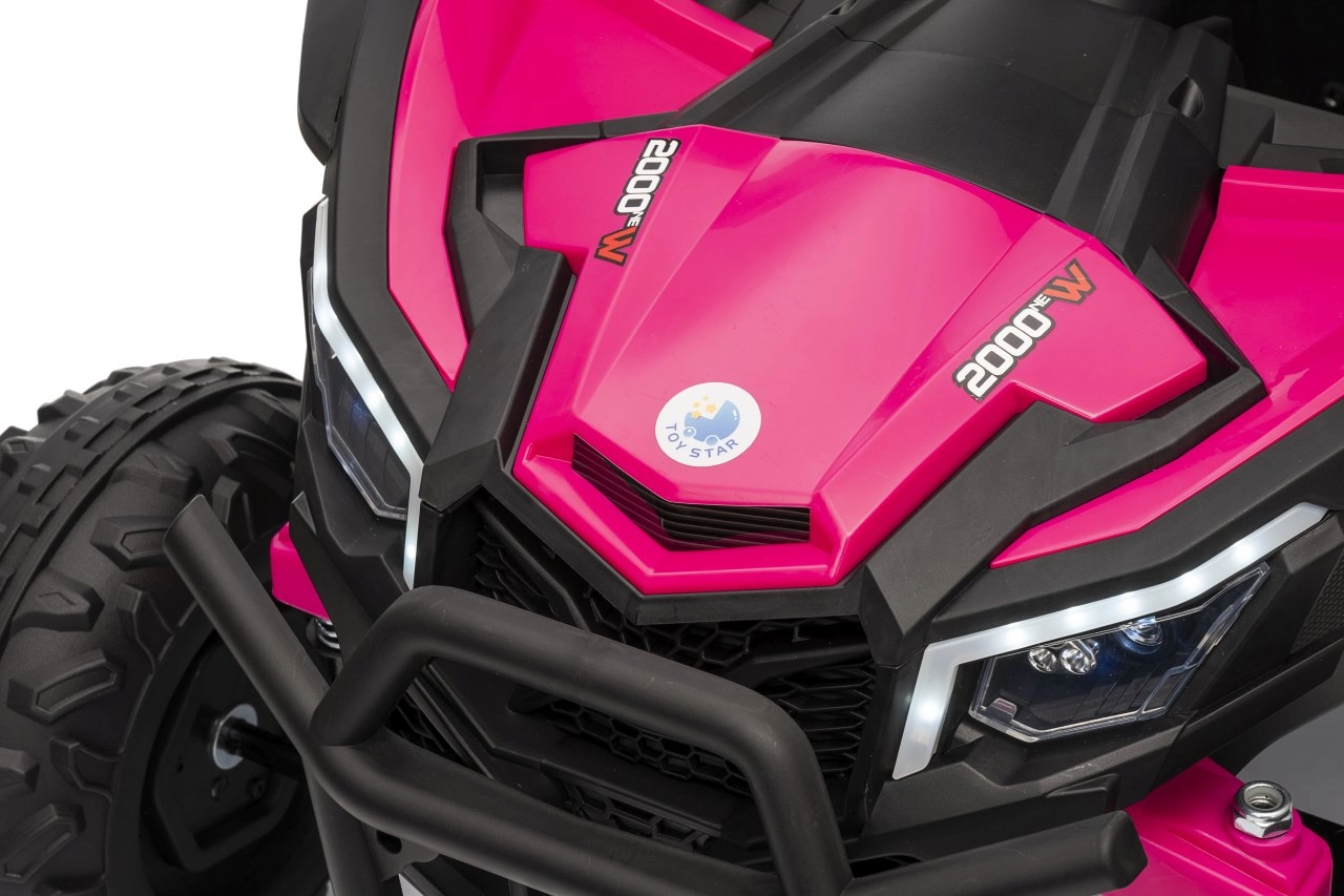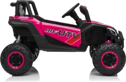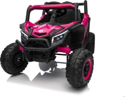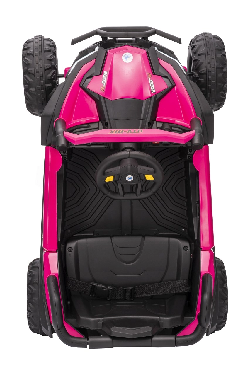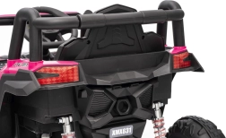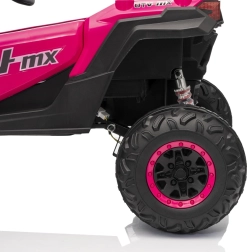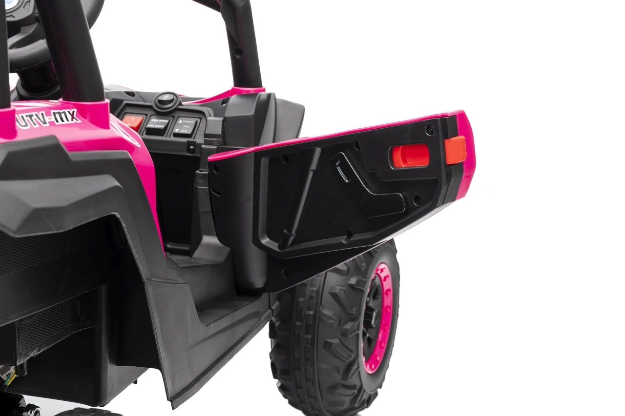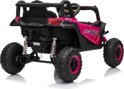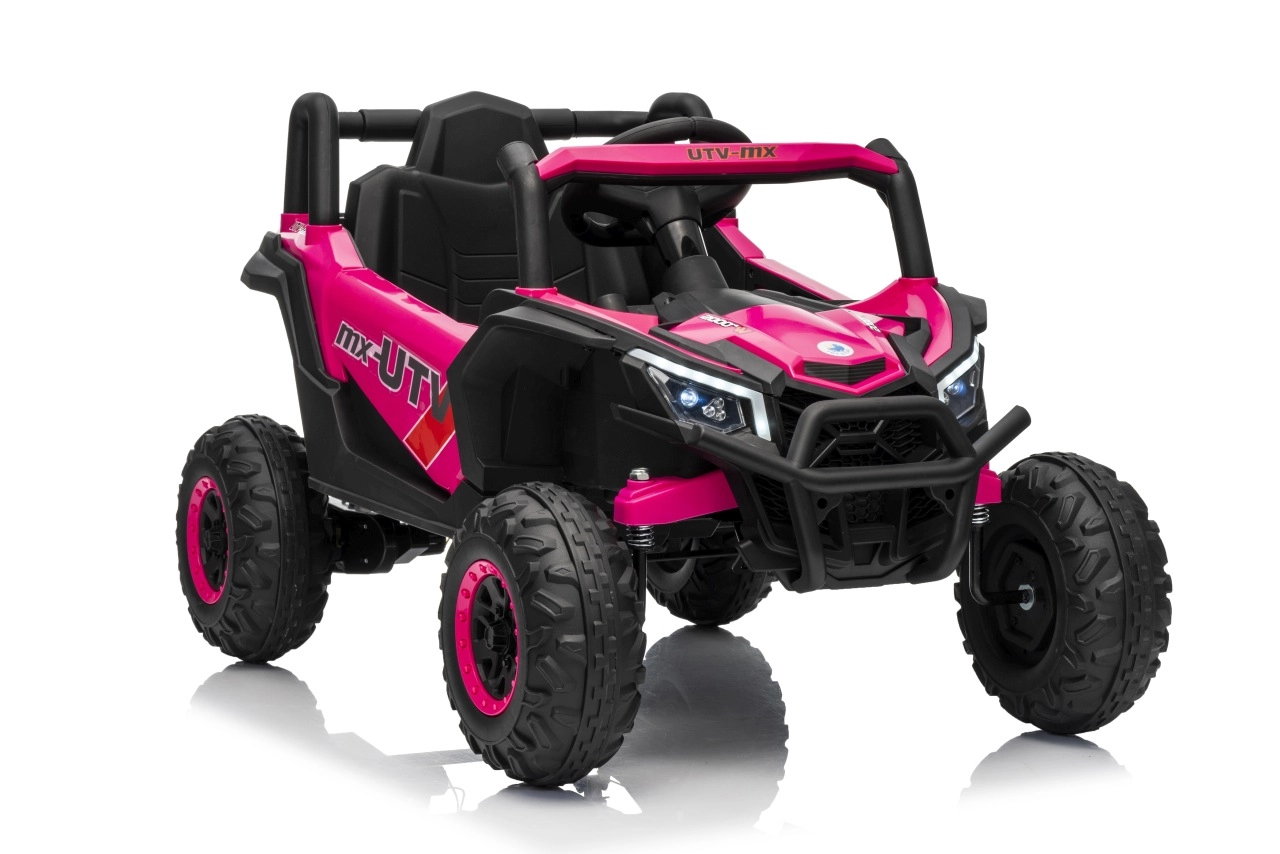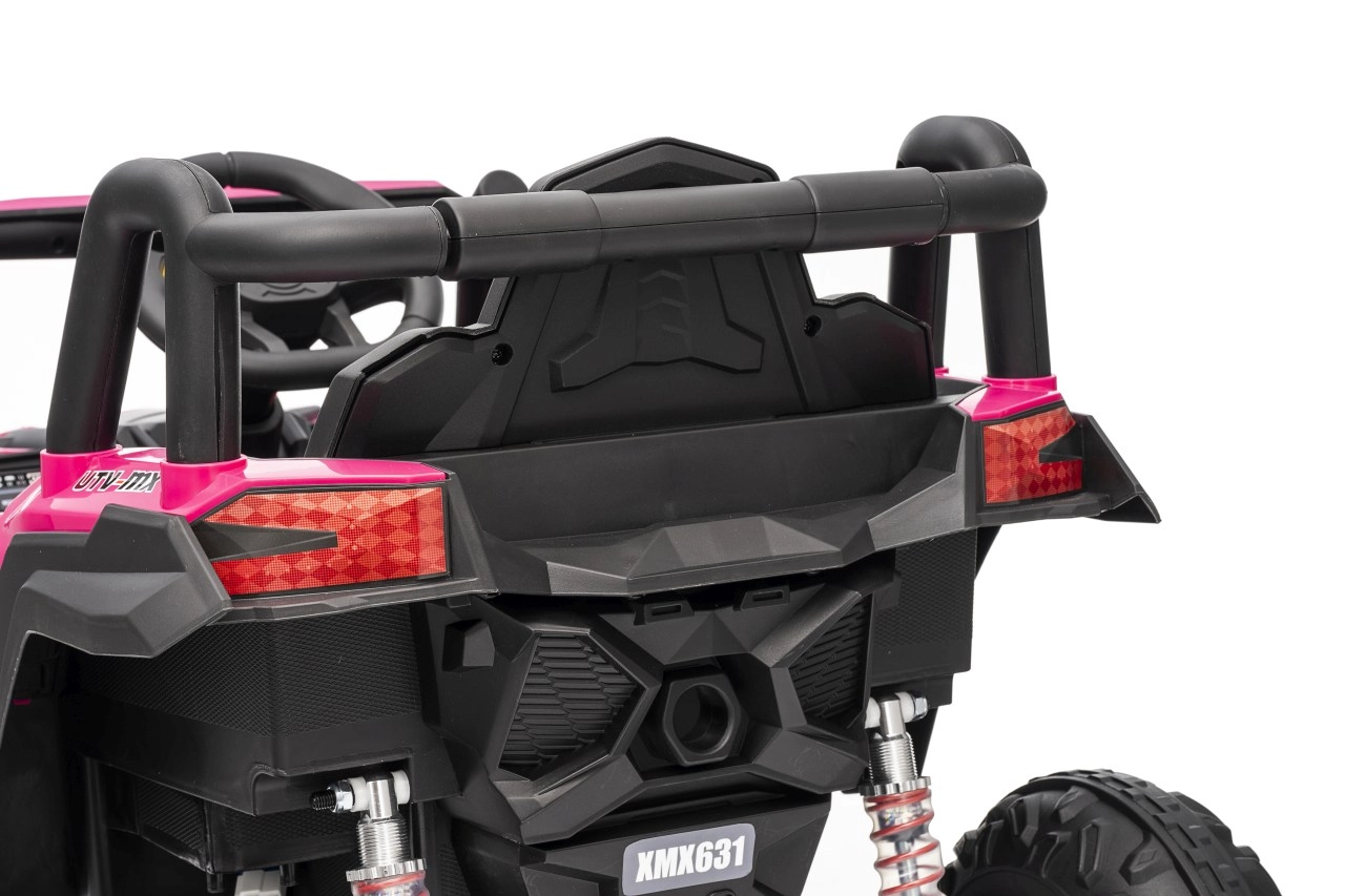 Das Kinder-Elektroauto Buggy Madman UTV-MX ist mit EVA-Schaumrädern mit den Maßen 24x10 cm ausgestattet, was eine komfortable und reibungslose Fahrt gewährleistet. Mit Federung vorne und hinten und zwei Geschwindigkeiten bietet dieses Modell Stabilität auch auf unebenem Gelände.