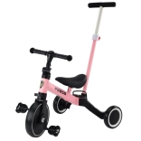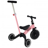 Das Modell PRO50 ist mit einem praktischen Führungshandgriff ausgestattet, der leicht entfernt werden kann, sobald das Kind selbstständig fahren kann. Das Design ermöglicht das Fahren auf auseinander- oder zusammengestellten Hinterrädern, was die Stabilität zu Beginn erhöht und einen reibungslosen Übergang zur klassischen Dreiradform ermöglicht.