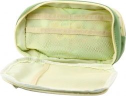 Im Inneren des Mäppchens befinden sich Netztaschen, ideal für kleinere Gegenstände wie Radiergummis, Spitzer oder Büroklammern. Das Mäppchen ist aus strapazierfähigem Material gefertigt, mit modernem grünem Design und hellen Elementen, das einfach zu pflegen ist. Es eignet sich nicht nur für die Schule, sondern auch für das Büro oder Freizeitaktivitäten.