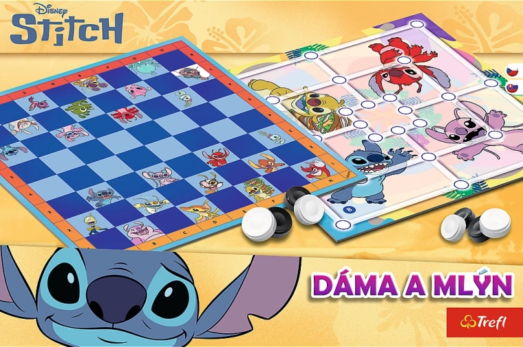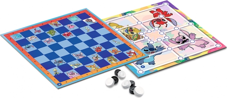 Genießen Sie klassische Strategien im modernen Gewand mit Motiven von Lilo & Stitch. Zwei beliebte Spiele in einer Packung – Dame und Mühle – fördern logisches Denken, Konzentration und bieten Spielspaß für die ganze Familie. Praktisches, zweiseitiges Spielbrett und alles Nötige in der Schachtel für ein schnelles, unkompliziertes Spiel zu Hause und unterwegs.