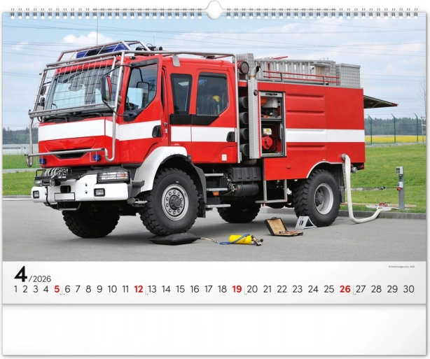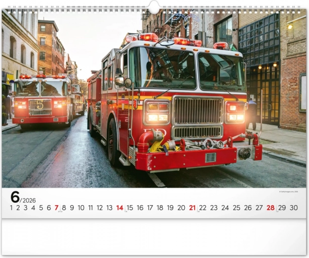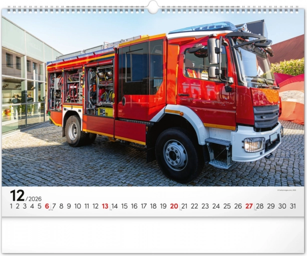 Wandkalender für Liebhaber von Feuerwehrfahrzeugen. Enthält zwölf faszinierende Aufnahmen der Technologie der Feuerwehr.