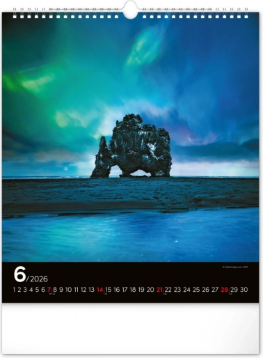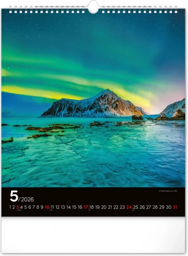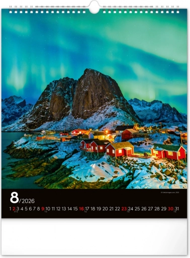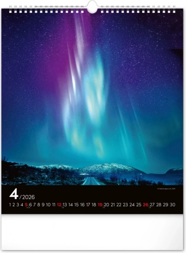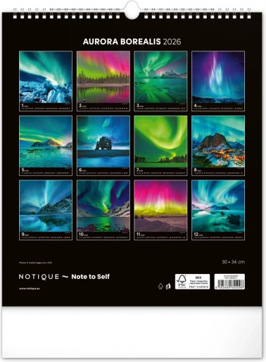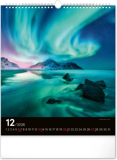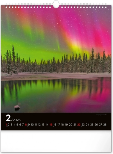 Der Kalender enthält zwölf einzigartige Aufnahmen, die Sie in die Landschaften unter den Polarlichtern versetzen.