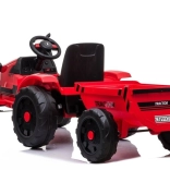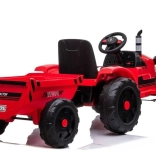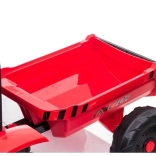 Der Traktor mit Anhänger besitzt alle charakteristischen Merkmale von Baufahrzeugen, einschließlich eines bequemen schwarzen Sitzes und eines Lenkrads mit Bedientasten und einem Musikpanel mit USB und Bluetooth. Die Konstruktion aus hochwertigem Material und die profilierte Bereifung ermöglichen das Fahren auf verschiedenen Oberflächen ohne Lärm.