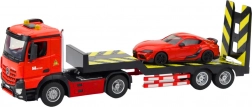 Das Set enthält einen Lastwagen mit Anhänger und einen Sportwagen in leuchtendem Rot. Mit der Fernsteuerung können Sie das schwere Fahrzeug in alle Richtungen lenken und bequem das Sportauto be- und entladen. Der Sportwagen ist ebenfalls ferngesteuert, was eine aufregende Fahrt auf Böden, Teppichen oder Rennstrecken ermöglicht.