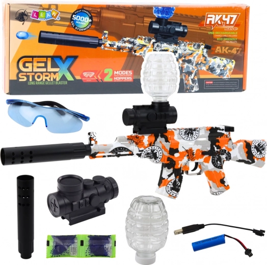 Dieser Karabiner ist mit wechselbaren Magazinen für Gel-Kugeln und einem optischen Visier ausgestattet, was aufregendes Spielen im Freien oder zu Hause ermöglicht (mit entsprechender Sicherung des Bereichs). Dank 3.7V Li-Akku bietet das Spielzeug eine komfortable Nutzung ohne häufigen Batteriewechsel.