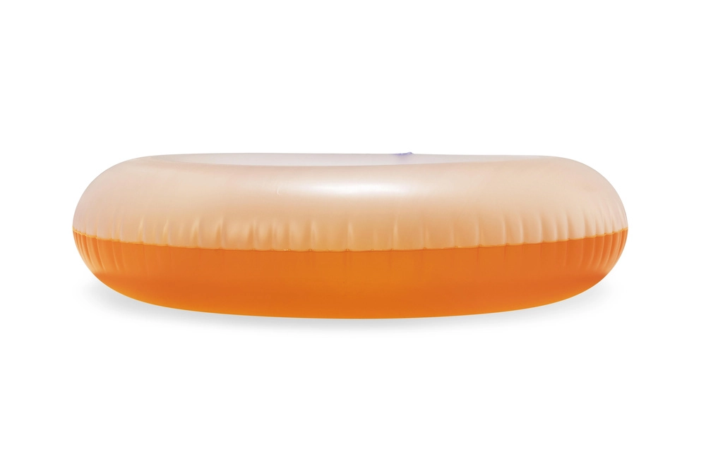 Aufblasbarer Schwimmring in orange ist die ideale Wahl für sommerliche Erfrischung. Hergestellt aus robustem PVC, ist er für intensiven Spaß bereit und bietet dank zwei stabilen Griffen sicheren Halt.
