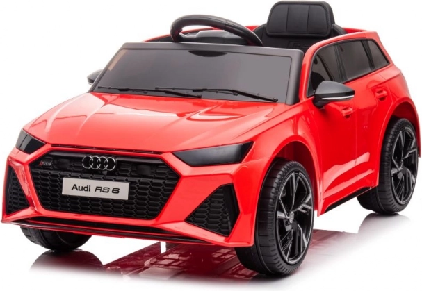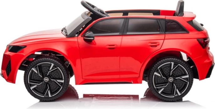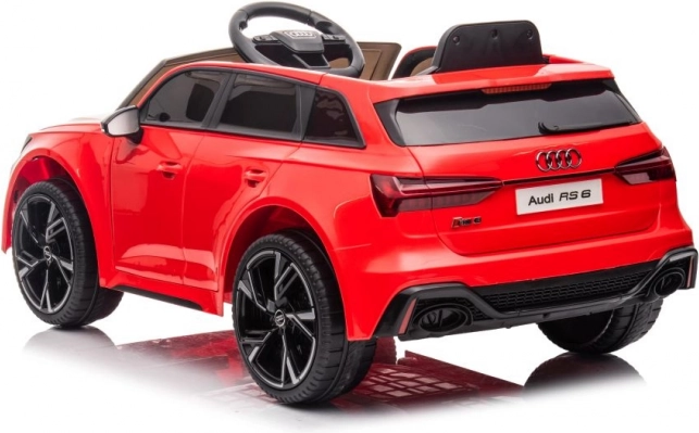 Elektrisches Audi RS6 Kinderauto in Rot mit realistischem Design und funktionalem Lenkrad für spaßiges Fahren.