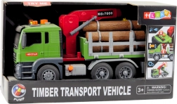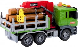 Der Lkw im Maßstab 1:14 ist mit beweglichen Teilen und interaktiven Funktionen ausgestattet, darunter Licht- und Soundeffekte – Rückfahrgeräusche, Warnsignal, Hupe und blinkende Warnlichter. Er kann manuell gesteuert werden, der Kranarm hat Tasten zum Anheben und Absenken der Holzstämme, was die Fantasie anregt und feinmotorische Fähigkeiten fördert.