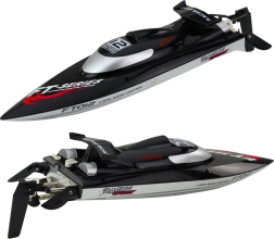 Das Boot FT012 überzeugt durch eine leichte und robuste Rumpfkonstruktion mit einer Länge von 47 cm, bietet hervorragende Stabilität bei hohen Geschwindigkeiten und ist dank Stabilisierungsfinne und leistungsstarkem Motor ideal für den Renneinsatz.