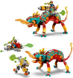 Wähle dein Abenteuer: Baue den feurigen Wächter mit einem Türmchen mit Blaster und vier Shootern oder verwandle ihn in einen schnellen Jet und einen kleinen Mech. Die modularen „Booster“-Zusatzelemente sind mit weiteren Sets der LEGO DREAMZzz Reihe (2025) kompatibel und erweitern die Spielmöglichkeiten.