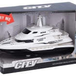Dieses weiße Trägheitsbetriebenes Boot besticht nicht nur durch sein elegantes Design, sondern auch durch interaktive Effekte, die es attraktiv für Kinder machen. Es bietet Stunden voller Spaß bei der Simulation einer Schifffahrt.