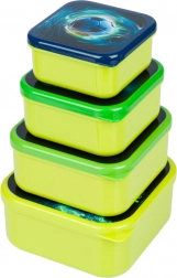Genießen Sie unbeschwerte Mittagessen mit dieser Snackbox 4 in 1. Sie besteht aus vier separaten Behältern in verschiedenen Größen, die platzsparend ineinander gestapelt werden können.