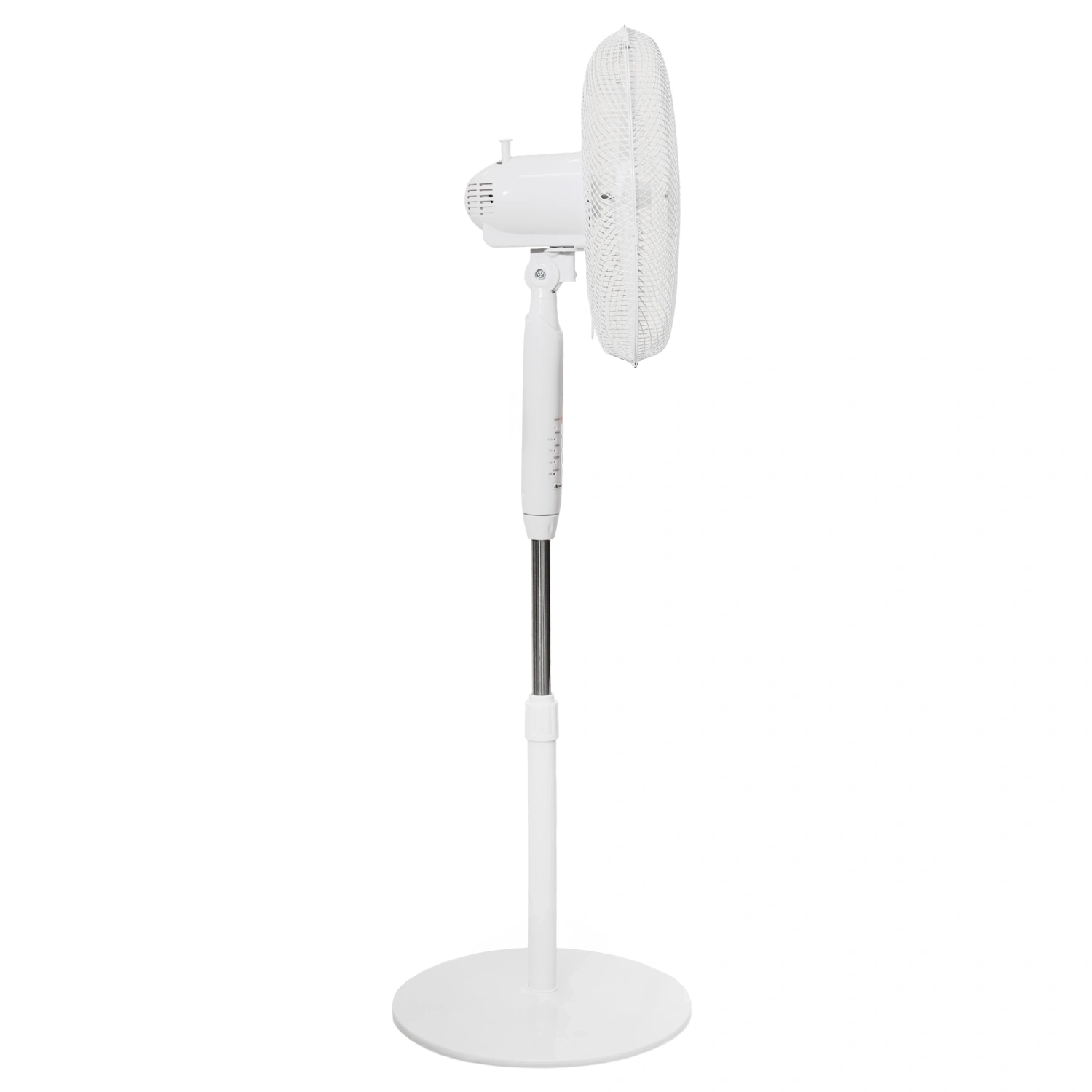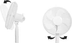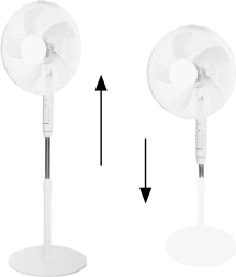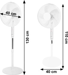 Der Ventilator bietet eine stufenlose Höhenverstellung von 110 bis 130 cm, was eine perfekte Platzierung in jedem Raum ermöglicht. Diese Eigenschaft, kombiniert mit einem einstellbaren Neigungswinkel und Oszillation, bietet volle Kontrolle über die Richtung und Kühlintensität.