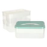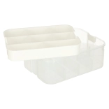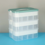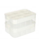 Der Organizer bietet flexible Aufbewahrungsmöglichkeiten dank seiner drei Ebenen, was es ermöglicht, alle Ihre Sachen organisiert und übersichtlich zu halten. Es ist aus hochwertigem Kunststoff gefertigt, der Langlebigkeit und Widerstandsfähigkeit garantiert.