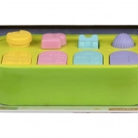 4 mechanische Aktionen (Drücken, Schieben, Drehen, Umschalten) mit hervorspringenden Tierchen