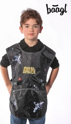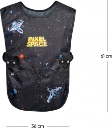 Die stilvolle Kinder Schürze Pixel Space ist ideal für Kunstunterricht, Handarbeiten und andere Kurse. Sie verfügt über praktische Taschen und ist aus abwaschbarem Material gefertigt.