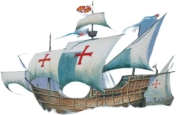 Das Modell ist eine originalgetreue Replik des echten Schiffs Santa Maria, das bei Expeditionen im 15. und 16. Jahrhundert verwendet wurde.
