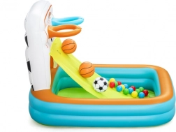 Das aufblasbare Spielzentrum Bestway Kick 'N Swish™ ist die ideale Wahl für aktive Unterhaltung Ihrer Kinder. Dieses multifunktionale Becken kombiniert Basketballkörbe mit einer Rücklaufbahn, die einen reibungslosen Spielablauf gewährleistet, und ein Mini-Tor für das Zielsicherheitstraining. Fügen Sie 15 bunte Bälle hinzu und verwandeln Sie den Pool in ein buntes Spielparadies, in dem Kinder spielen und entspannen können.