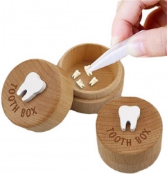 Holzkiste für Milchzähne ist eine großartige Lösung für Eltern, die eine wichtige Erinnerung an die ersten Zähne ihres Kindes bewahren möchten. Dieses Produkt ist nicht nur funktional, sondern auch dekorativ. Dank der detaillierten Gravur und des dekorativen Deckels in Zahnform wird es zu einem schönen und stilvollen Andenken, das Ihre Sammlung von Kindheitserinnerungen perfekt ergänzt.
