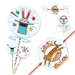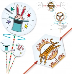 Tauchen Sie ein in die Welt des Zirkus und erstellen Sie faszinierende optische Illusionen mit dem DJeco DIY Thaumatrop Zirkus. Dieses kreative Set enthält alles, was Sie brauchen, um mit einfachen Illusionen eine kleine Zirkusshow zu Hause zu gestalten.