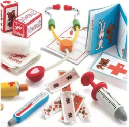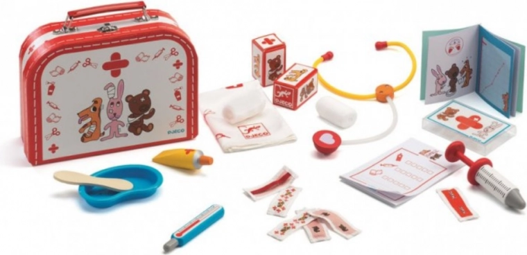 Der Doktorkoffer DJECO ist das ideale Spielzeug für Kinder, die kleine Ärzte werden möchten. Dieses Set fördert kreatives Spielen, die Entwicklung sozialer Fähigkeiten und Empathie. Es enthält verschiedene medizinische Instrumente wie Stethoskop, Thermometer und vieles mehr.